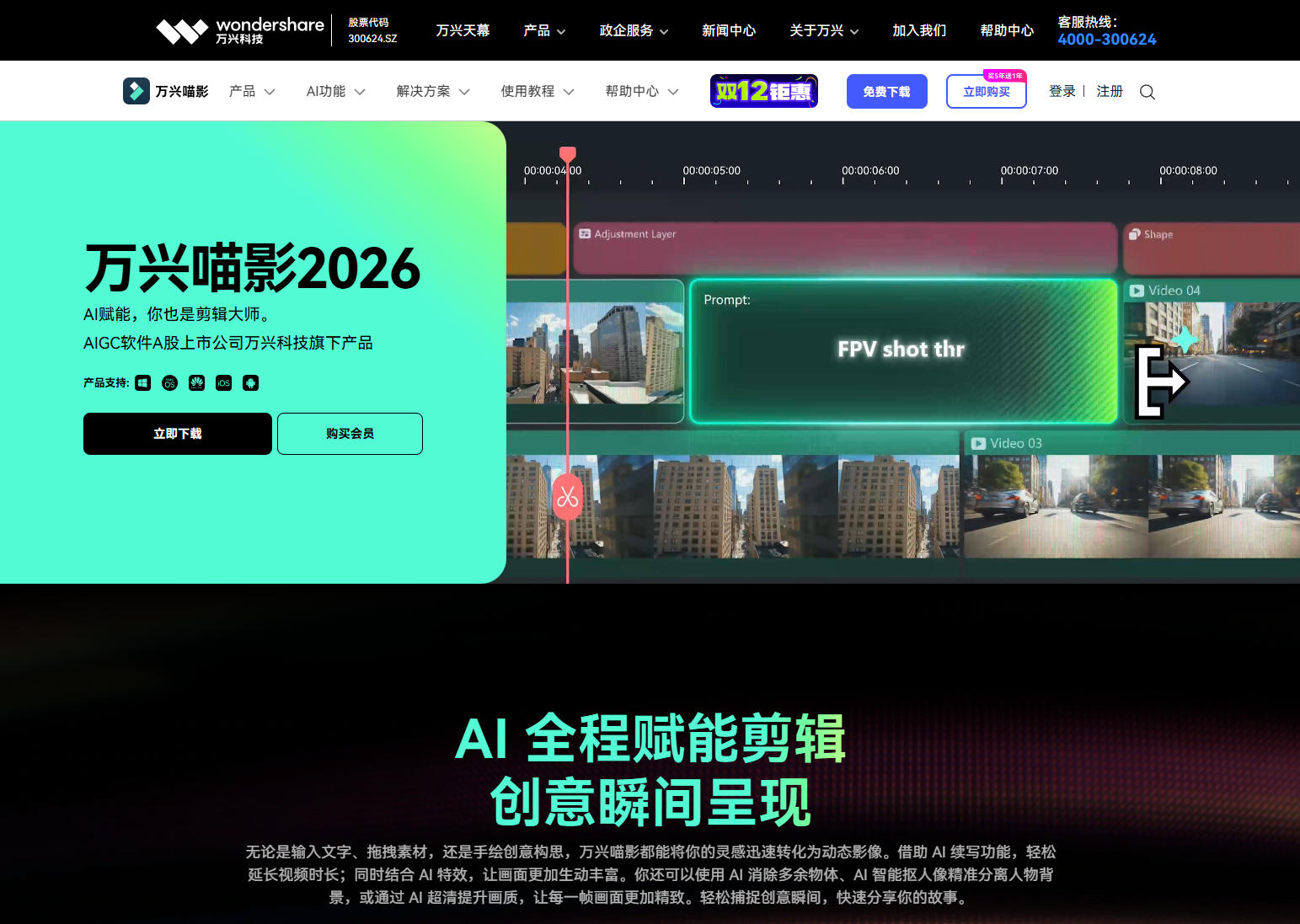易上手且功能强大的国产 AIGC 视频剪辑软件。借助它,您能够快速、轻松地将视频片段、照片和音乐素材融合,打造出独具特色的视频故事。使用万兴喵影,您将突破想象力的边界。它让创意表达变得触手可及,无论您是否具备专业剪辑基础,都能轻松释放创造力。这款软件帮您摆脱重复繁琐的操作,让您将全部精力投入到天马行空的想象之中,尽情挥洒创意灵感。