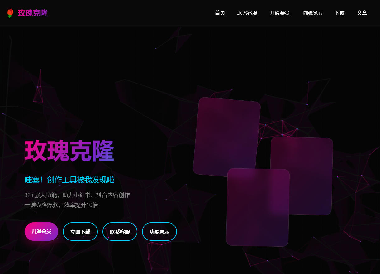 还在为写文案、P图头疼?我们的玫瑰克隆工具深度解析平台算法,一键生成高赞标题、爆款文案、吸睛封面和热门标签,帮你把创作时间从几小时缩短到几分钟,快速产出平台喜爱的优质内容。