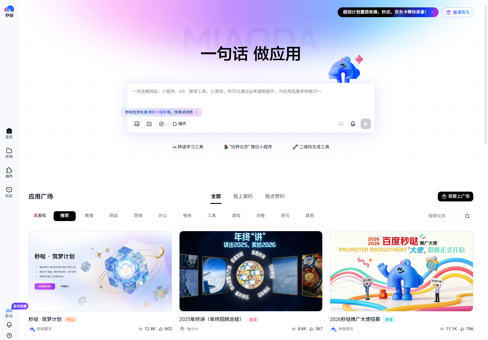 一句话做网站、小程序、H5、提效工具、小游戏,为应用拓展多种能力~