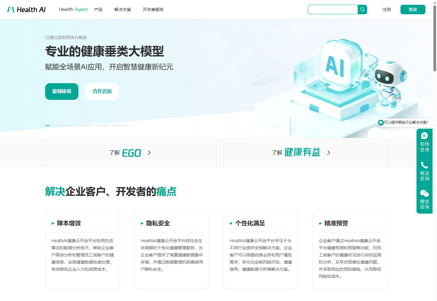 为此,平台开创性地提供了“双轨并行”的赋能模式:一方面,为追求效率的企业提供覆盖核心行业的500+“开箱即用”式企业级标准AI应用,助力其快速实现业务智能化升级;另一方面,为需要深度定制和自主创新的企业及开发者,提供功能完备的可视化开发平台与丰富的能力模块,支持其灵活、高效地构建专属的AI智能体应用,沉淀自身的数字资产。 最终,我们通过一个集专业知识、模型能力、开发工具、应用生态与运营管理于一体的开放平台,赋能消费电子、金融保险、医疗医药、传统零售、养老康养等各行各业,将专业的健康AI能力无缝嵌入其业务流程与客户服务中,共同开创“AI+健康”的产业新生态,实现从“技术赋能”到“价值创造”的飞跃。